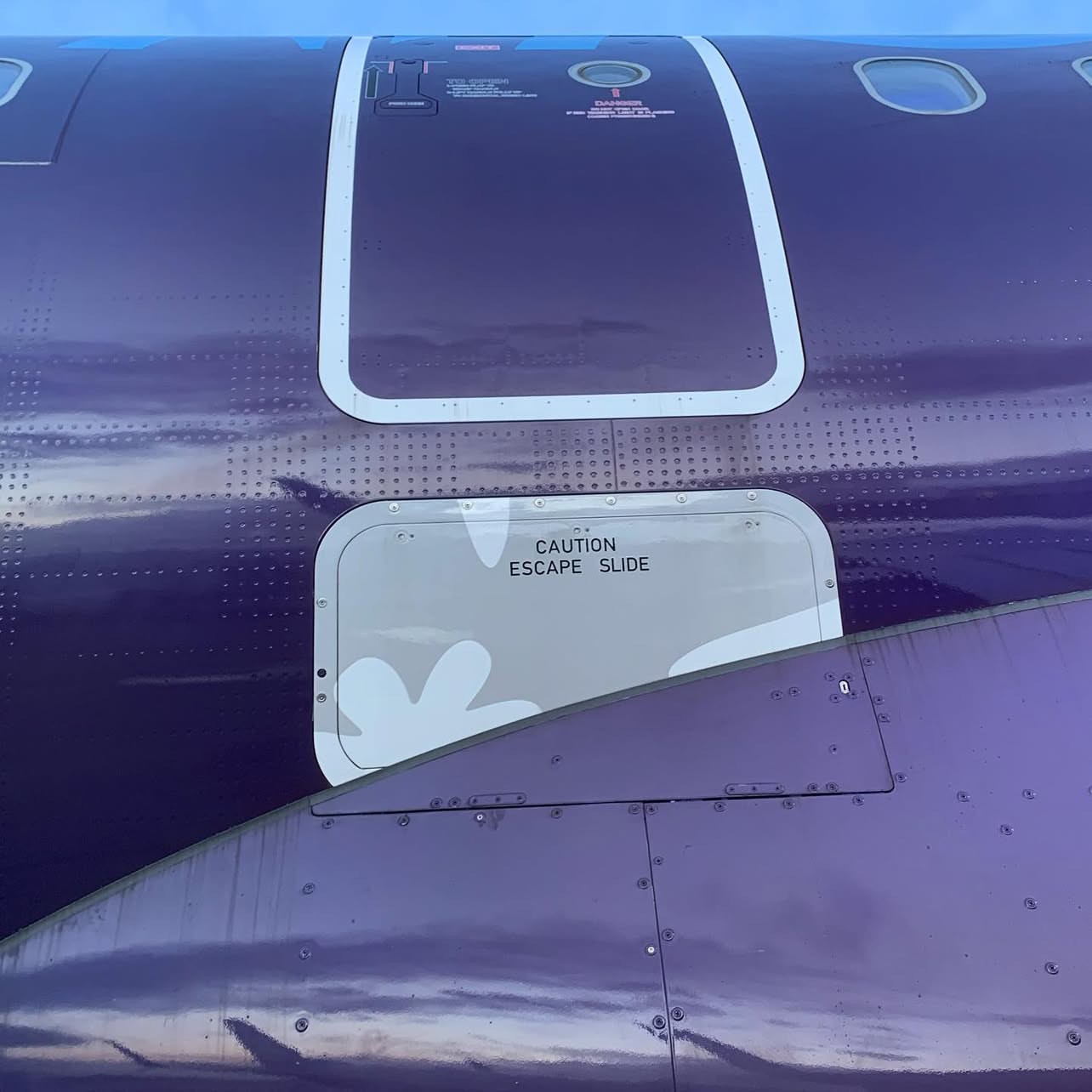 · 特点:这是最常见的“小”逃生门。它们比主登机门小,通常只配有单通道滑梯。从外部看,其玻璃或塑料窗框上会有明确的标识。从内部看,其周围结构会非常醒目。